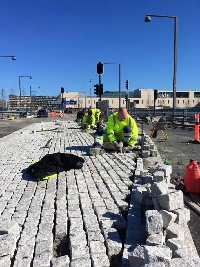 Fra robuste indkørsler og elegante terrasser til store byrum, veje og klimatilpasningsløsninger.